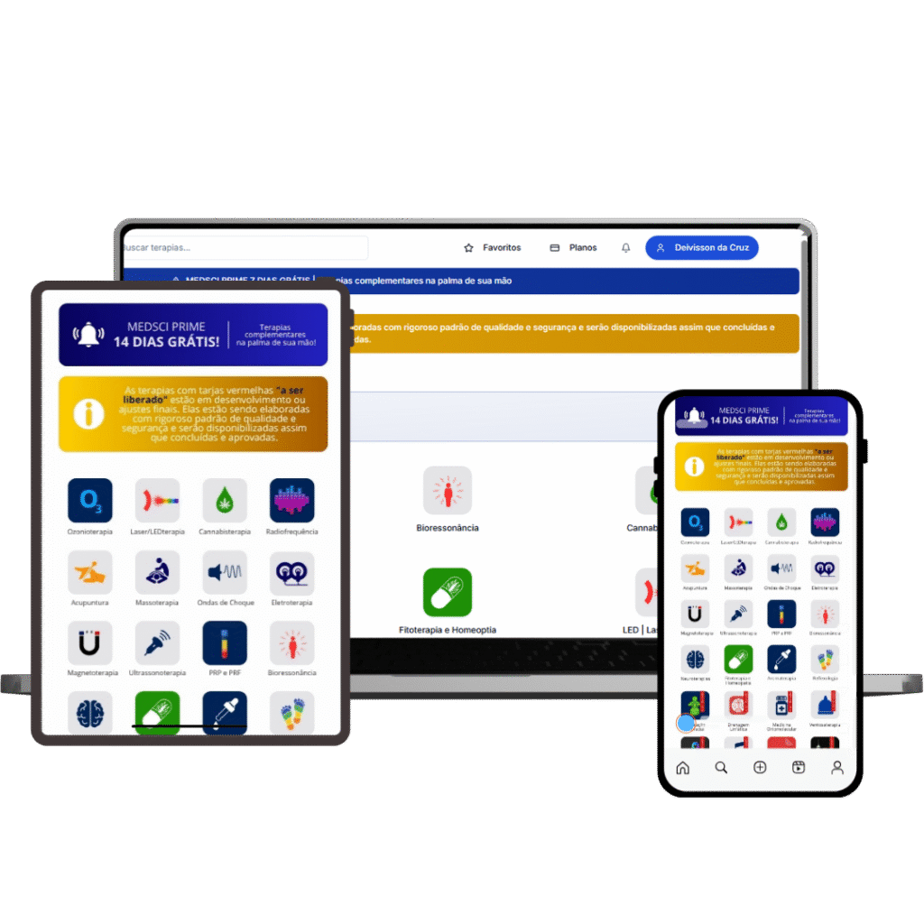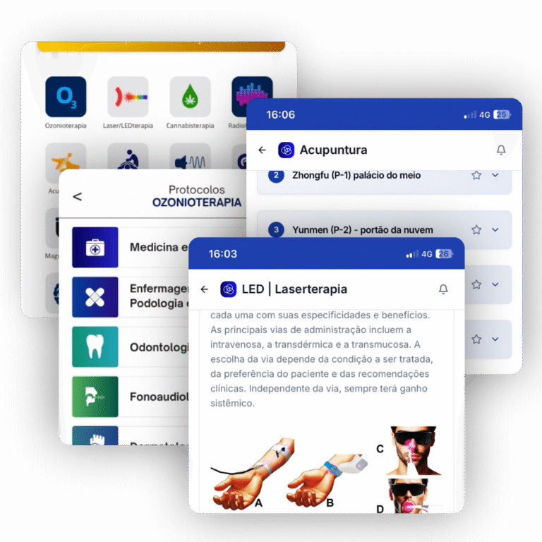 Navegação rápida, intuitiva e dinâmica, com uma interface organizada de forma clara. Os conteúdos são segmentados por terapias, áreas de atuação, protocolos e conhecimentos gerais.